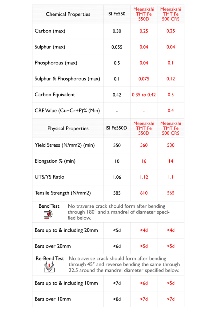 TMT bars are produced with corrosion resistance elements such as copper, chromium and phosphorus.